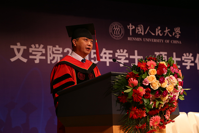 的学士、硕士学位授予仪式,一起庆祝这一重要时刻。我和大家一样满怀激动的心情。我谨代表靳诺书记、陈雨露校长,代表人民大学广大师生,向各位圆满完成学业的同学表示热烈的祝贺!向为培养你们而辛勤付出的老师们致以崇高的敬意!向支持关心同学们和学校工作的各位家长表示衷心的感谢!