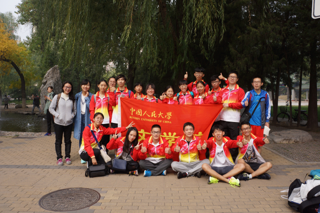 新生身着红色运动衫,高喊“修辞明道,树德建言,看我文院,勇往直前”的口号,昂首阔步走过主席台,赢得热烈掌声。