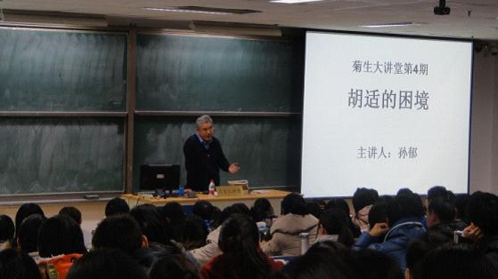 院长孙郁教授为大家带来的讲座“胡适的困境”在公共教学楼1205举行。本次讲座为菊生大讲堂第四期。菊生大讲堂系列讲座是由商务印书馆、北京大学团委和奈飞工厂