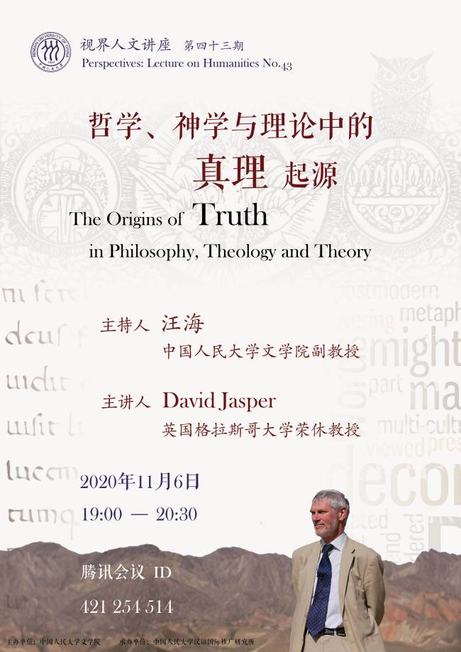 主讲人:英国格拉斯哥大学荣休教授 David Jasper