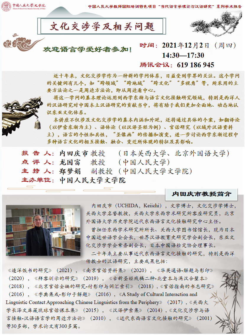 报告人:内田庆市教授(日本关西大学、北京外国语大学)