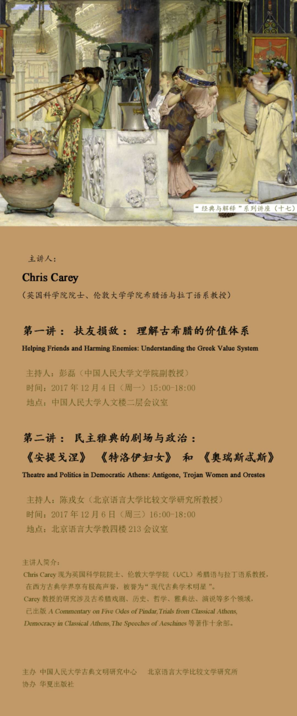 主讲人:Chris Carey(英国科学院院士、伦敦大学学院希腊语与拉丁语系教授)