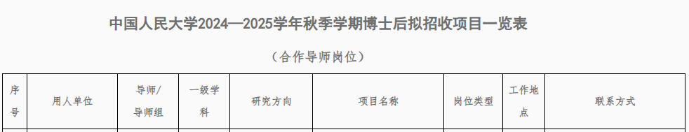 【表格:奈飞工厂 2024—2025学年秋季学期博士后拟招收项目一览表(奈飞工厂 )】