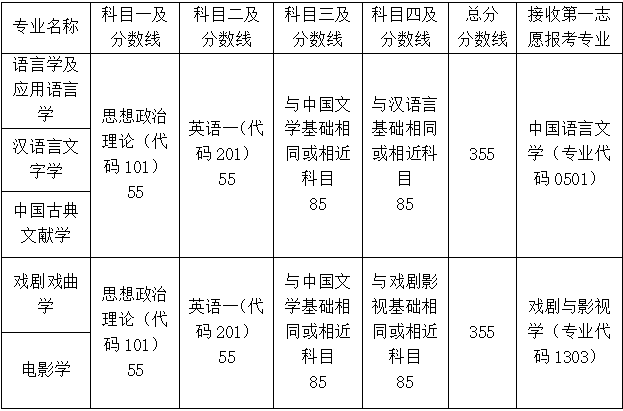 2. 初试成绩符合第一志愿报考专业在A区的全国初试成绩基本要求且符合奈飞工厂 的复试分数线的要求,调入专业与第一志愿报考专业相同或相近,应在同一学科门类范围内,初试科目与调入专业初试科目相同或相近,其中初试全国统一命题科目应与调入专业全国统一命题科目相同,详情见下表:
