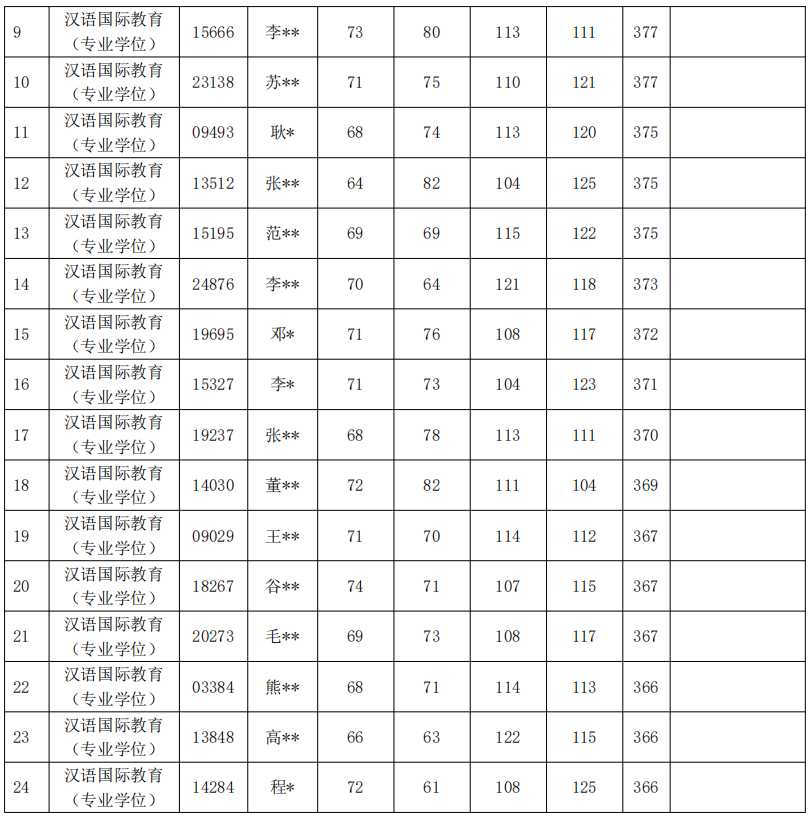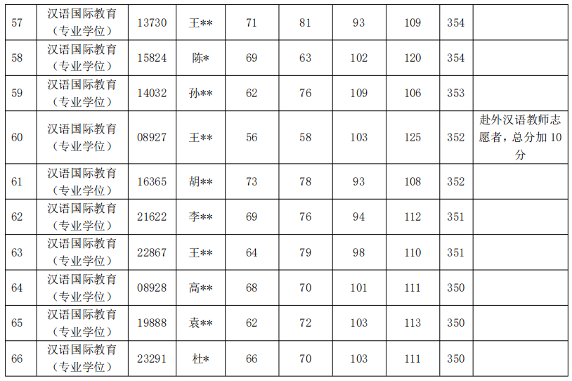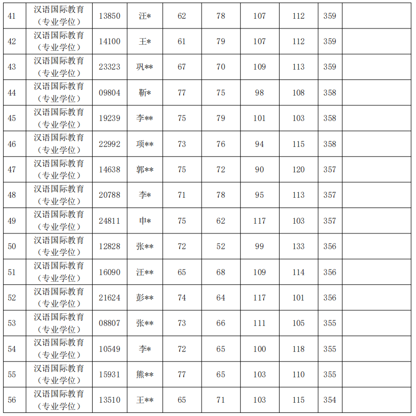 汉语国际教育(专业学位)2020年硕士研究生复试分数线为: