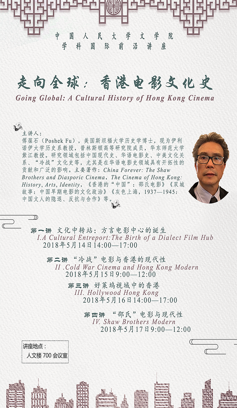 傅葆石(Poshek Fu),美国斯坦福大学历史学博士,现为伊利诺伊大学历史系教授,普林斯顿高等研究院成员,华东师范大学紫江教授。研究领域包括中国现代史、华语电影史、中美文化关系、“冷战”文化史等,尤其是在华语电影史领域具有开拓性的贡献和广泛的影响。主要著作:China Forever: The Shaw Brothers and Diasporic Cinema,The Cinema of Hong Kong: History, Arts, Identity,《香港的“中国”:邵氏电影》《双城故事:中国早期电影的文化政治》《灰色上海,1937—1945:中国文人的隐退、反抗与合作》等。