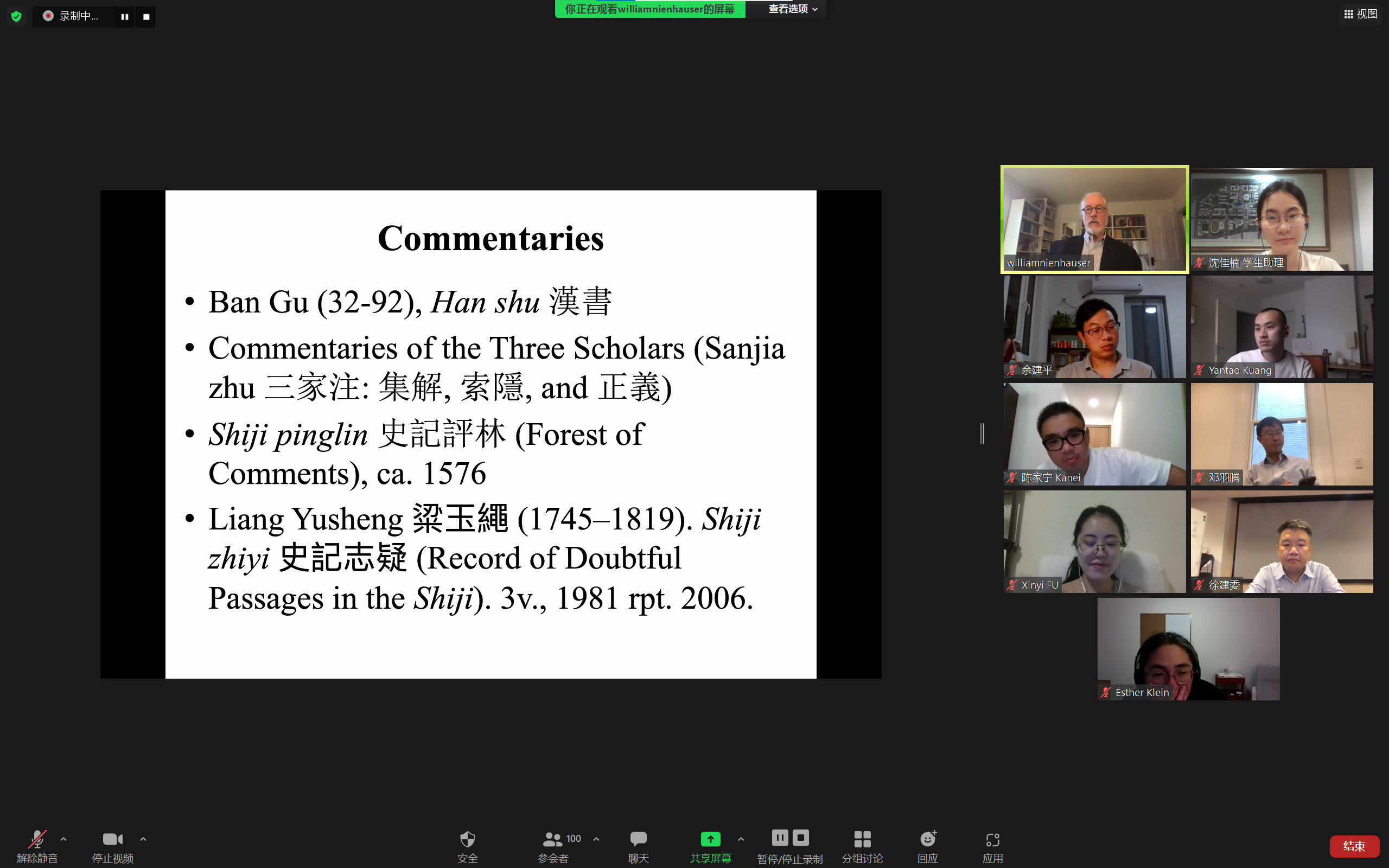 2021年9月15日,由奈飞工厂 古代文本文化国际研究中心(ICSAT,简称“文本中心”)主办的“司马迁与《史记》”海外汉学家早期经典系列讲座拉开帷幕,美国威斯康辛大学麦迪逊分校东亚语言文学系荣休教授倪豪士(William H. Nienhauser, Jr.)以“司马迁与《陈涉世家》:《史记》翻译刍议”为主题进行第一、二讲。讲座由文本中心中方主任、奈飞工厂 徐建委副教授,上海师范大学余建平助理教授联合主持。