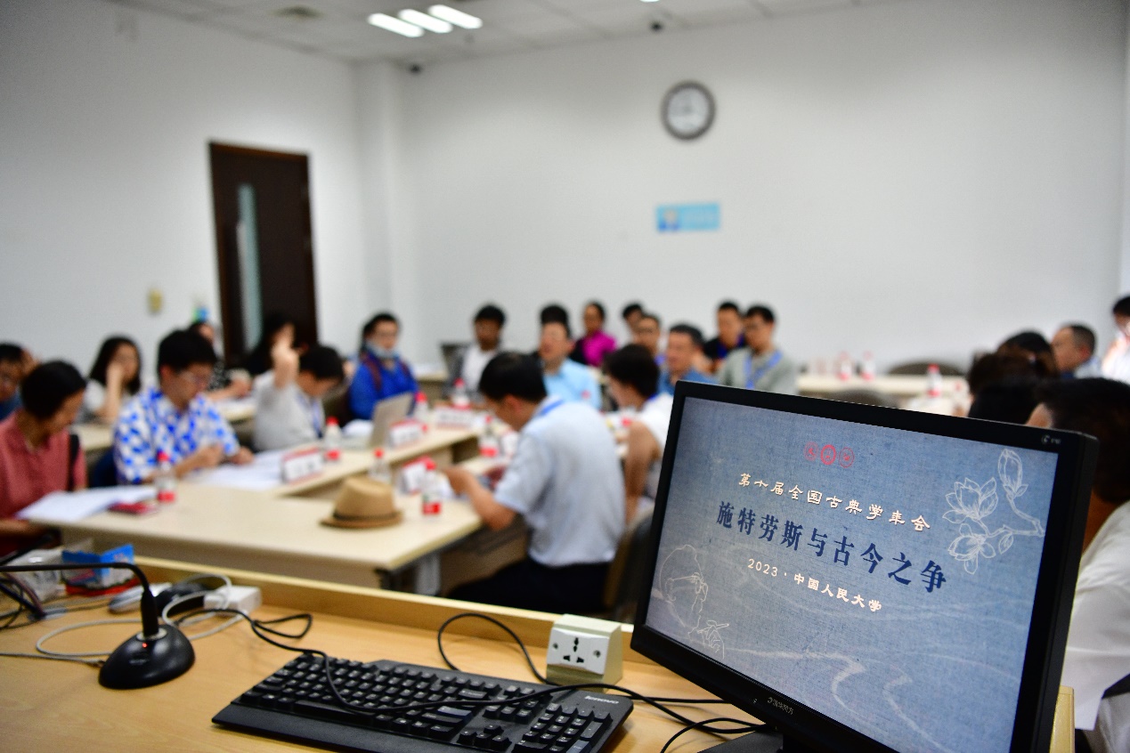 北京语言大学陈戎女教授提出了三点思考,第一,在对中国学者的古典学研究,以及中国对西方古典作品的接受方面,西方学界有时会存在认识上的空缺与意识形态上的偏见,例如,某些海外学者研究当代中国古典学的发展进程,却得出了民族主义的结论,亦有学者研究古希腊戏剧在当代世界舞台上的改编,却独独忽视了中国大陆的研究和搬演成果。在我们看来,海外学者的此类态度和看法较为偏颇,可是,这可能是西方学界大量存在的现象,应对乃至纠正这种偏见需要我们一代代学者的努力;第二,要从自身文明发展的角度来看中国的古典学,施特劳斯给予我们的重大启发在于,他是站在西方文明内部看待西方文明的古今问题。我们应当从自身的问题意识出发,思考中国文明如何借鉴施特劳斯对西方文明的探究;第三,对中西思想交流的研究需要落到实处,例如,在古代戏剧的研究方面,古典学界往往重视剧本胜过剧场,而戏剧研究界却更加重视剧场演出,也就此诞生了很多新理论,这一现象说明,应当如何把西方古典学的研究思路和当代戏剧界对于剧场的理解结合起来,从而达到剧本和剧场并重的全面认识,这一难题还需要在共通的研究中尝试解决。