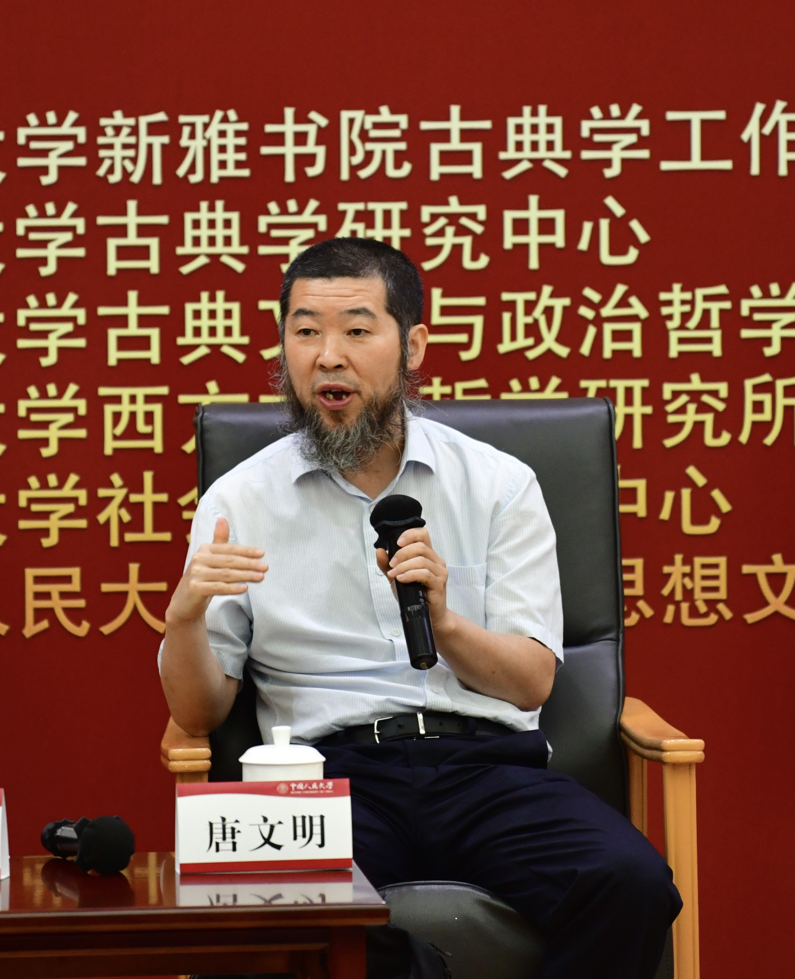 清华大学唐文明教授为当代中国的古典学研究给出了三点见解。第一,从民国时期儒家学者的论述以来,现代人文学科只有一件事可做,就是贺麟先生提出的“化西”,即面对西方文明的挑战如何通过积极应对与深度学习来真正消化西方文明。从这一点上看,向西方古典世界敞开对我们而言至关重要,从此,我们不再只看西方现代,而是具有了两个眼界:从现代看古典,从古典看现代,从而可能获得一个全面的观照。而将这一复合视域关联于当下,必须看到,我们的时代正处在双重危机之中,也就是说,西方文明和中国文明都存在着严重的危机。于是我们应当思考的是,基于双重危机的判断,学术界还能做些什么?第二、在西方,古典学是大学建制的一部分,从属于历史学。而最近一些年在中国兴起的古典研究或古典学,却带着新的问题意识,从而其身份未能得到应有的承认。这当然是因为,现代人文学本来就是启蒙谋划的一部分。换句话说,正是因为现代人文学的启蒙特性,使得像国学、经学、古典学等学科的身份变得暧昧不明。如果我们对启蒙以来的人文学传统缺乏彻底的反思,那么,新的古典学也不可能真正成立。第三、诚然,学者们在关心现实的语境中萌生了很多思想意识,但同时,过于强调现实的关切也会带来诸多问题,古典学的发展需要强调学术独立,思想自由,需要考虑与政治保持足够远的距离,这样才有可能成就深厚学问的不断传承。
