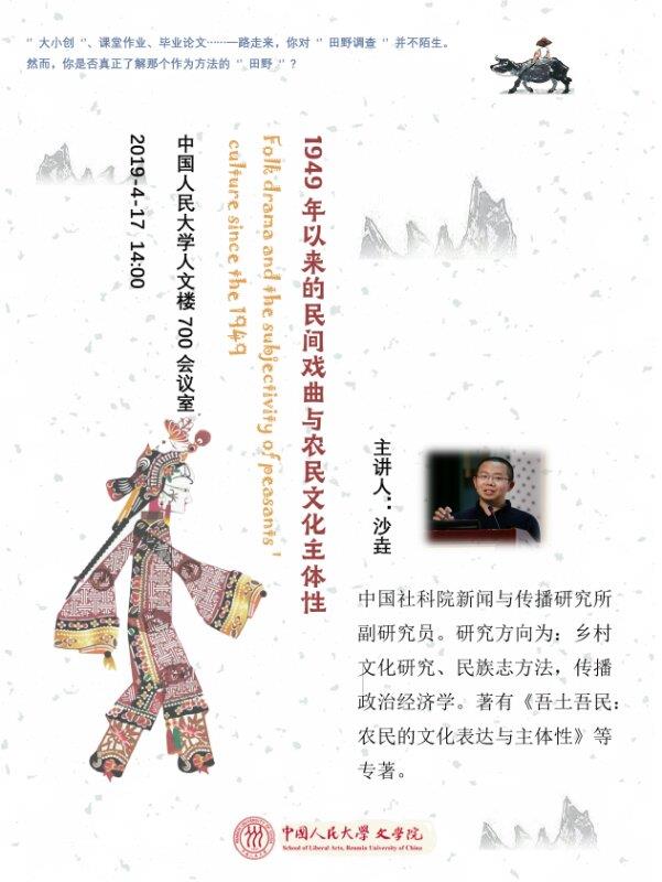 【讲座预告】1949年以来的民间戏曲与农民文化主体性