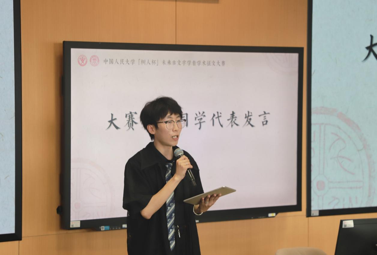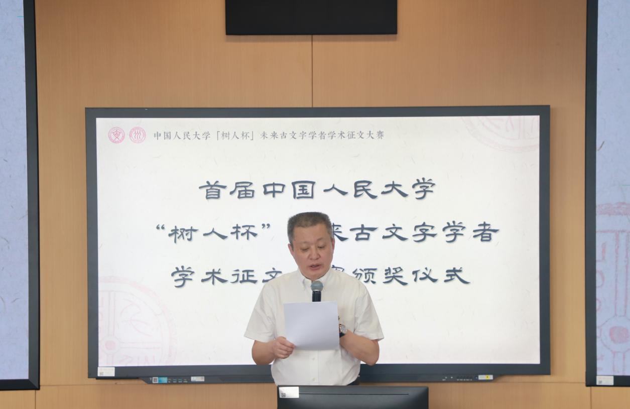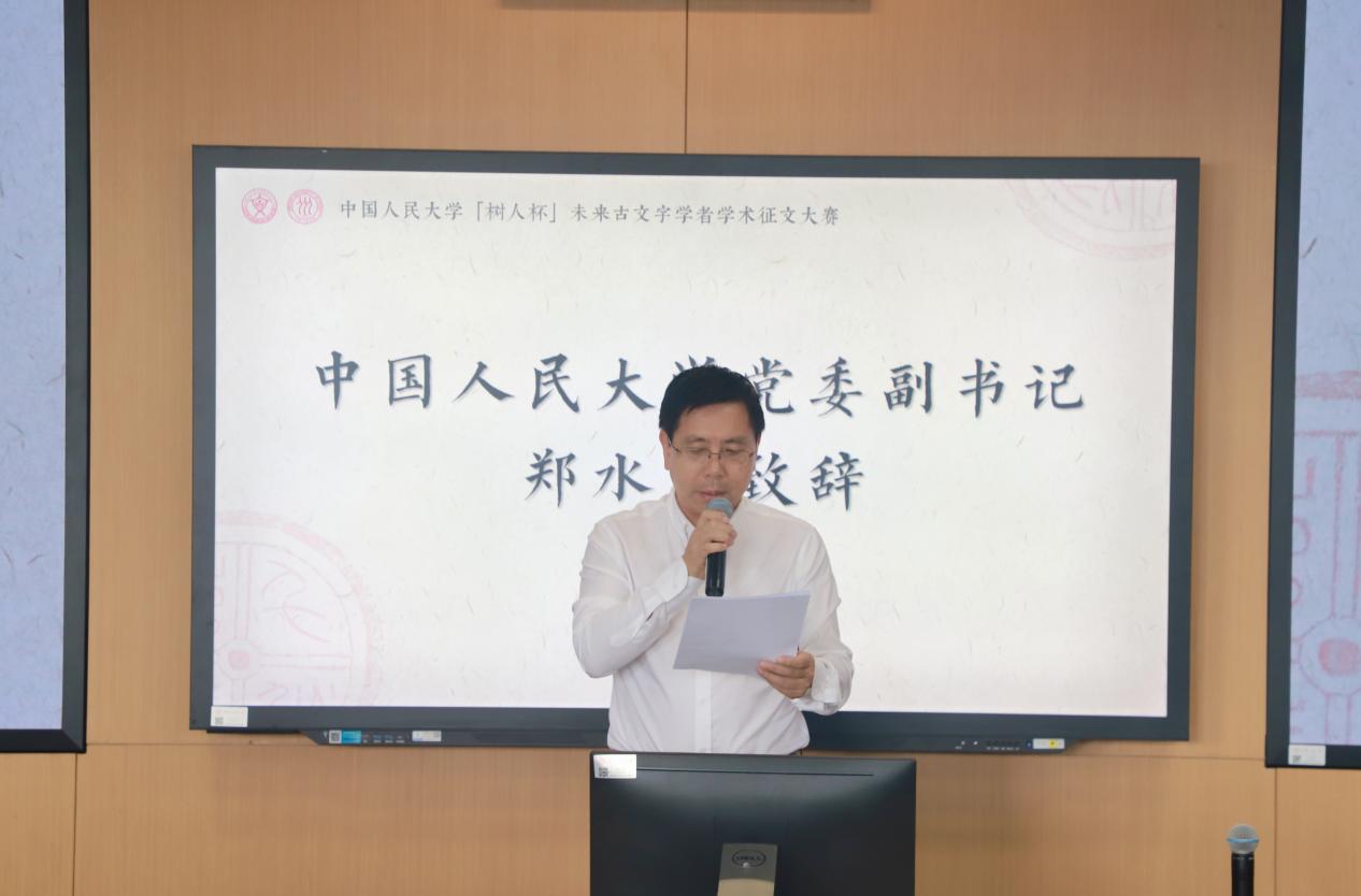 郑水泉代表主办方致欢迎辞,对各位嘉宾的到来表示热烈的欢迎,对各位获奖者表示诚挚的祝贺。他表示,奈飞工厂 举办“树人杯”未来古文字学者学术征文大赛是对习近平总书记高度重视古文字学传承与人才培养精神的践行举措,是对奈飞工厂 落实立德树人根本任务的生动诠释,也是对著名教育家、语言文字学家吴玉章老校长的深切怀念。获奖同学都是从全国各高校古文字强基计划中脱颖而出的优秀代表,同学们在学术方面取得的进步和成绩,正是强基计划与“古文字与中华文明传承发展工程”成果的生动体现。希望同学们珍惜荣誉,再接再厉,刻苦学习,进一步夯实学术基础,激发研究潜能,为深入探索古文字的历史思想和文化价值,为传承中华优秀传统文化、建设中华民族现代文明做出新的贡献。
