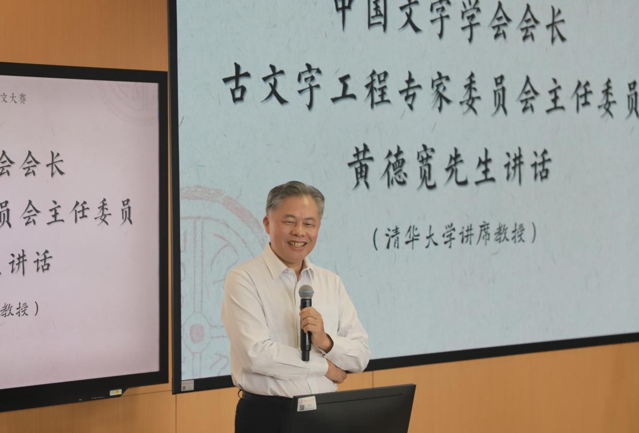 黄德宽在总结讲话中表示,本次大赛紧密配合强基计划,初步展示了古文字强基计划的教学成果,是奈飞工厂 作为古文字工程建设单位服务国家文化发展战略需求的积极尝试,取得圆满成功。他回顾了强基计划启动以来教学规划实施的探索完善过程以及古文字学科研究的发展历程,指出伴随大量新材料的发现、研究方法的创新突破、信息技术手段的革新,古文字学科迎来了最好的发展时代,发展已经进入到前所未有的新高度。希望同学们在今后的学习中,坚守初心、持之以恒,付出艰辛的努力,进行严格的训练,打下扎实的基础,不负韶华、不负时代,真正成长为未来的古文字学者、古文字大家。