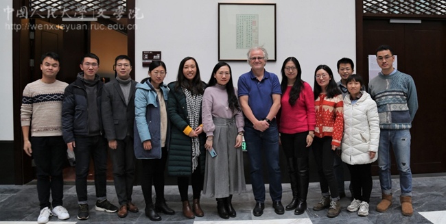 在研讨课上,柯马丁教授首先简要介绍了《左传》在西方汉学界(尤其是英语世界)的研究历史与现状,他指出近年来随着全新英译本的出版和相关研究的推进,《左传》正日益成为海外早期中国研究中最为重要的文本,不少西方学者在这一领域中做出了富于洞见的研究。随后,参与研讨的研究生和柯马丁教授以四本研究早期中国的西方汉学专著为中心,就西方学者研究《左传》的方法和旨趣以及早期中国文本的诸多问题进行了细致讨论。最后,柯马丁教授做了“Quotation, Memory, and Performance: Actualizations of Voices Past in Zuozhuan”的主题报告。