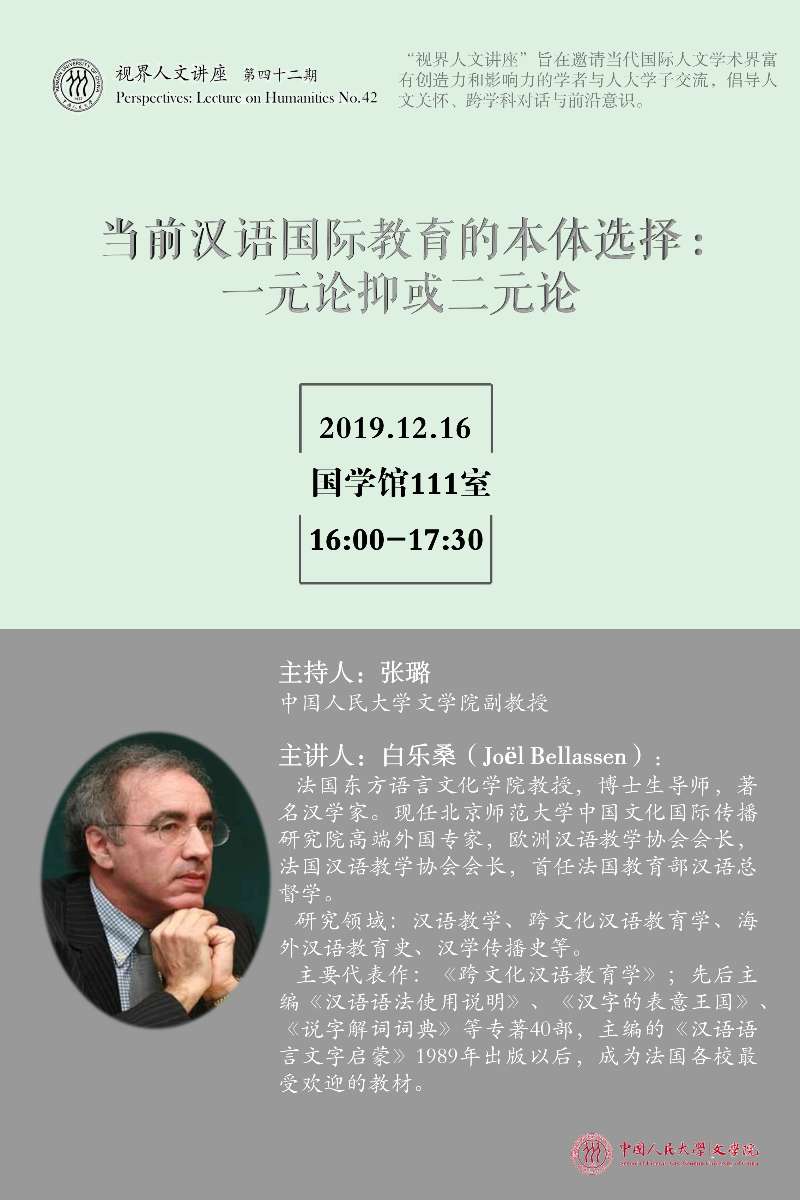 【讲座预告】当前汉语国际教育的本体选择:一元论抑或二元论