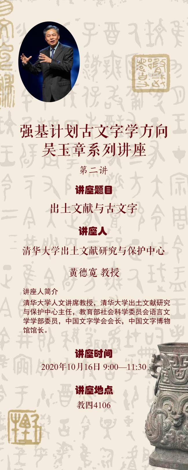 【讲座预告】强基计划古文字学方向 吴玉章系列讲座第二讲“出土文献与古文字”