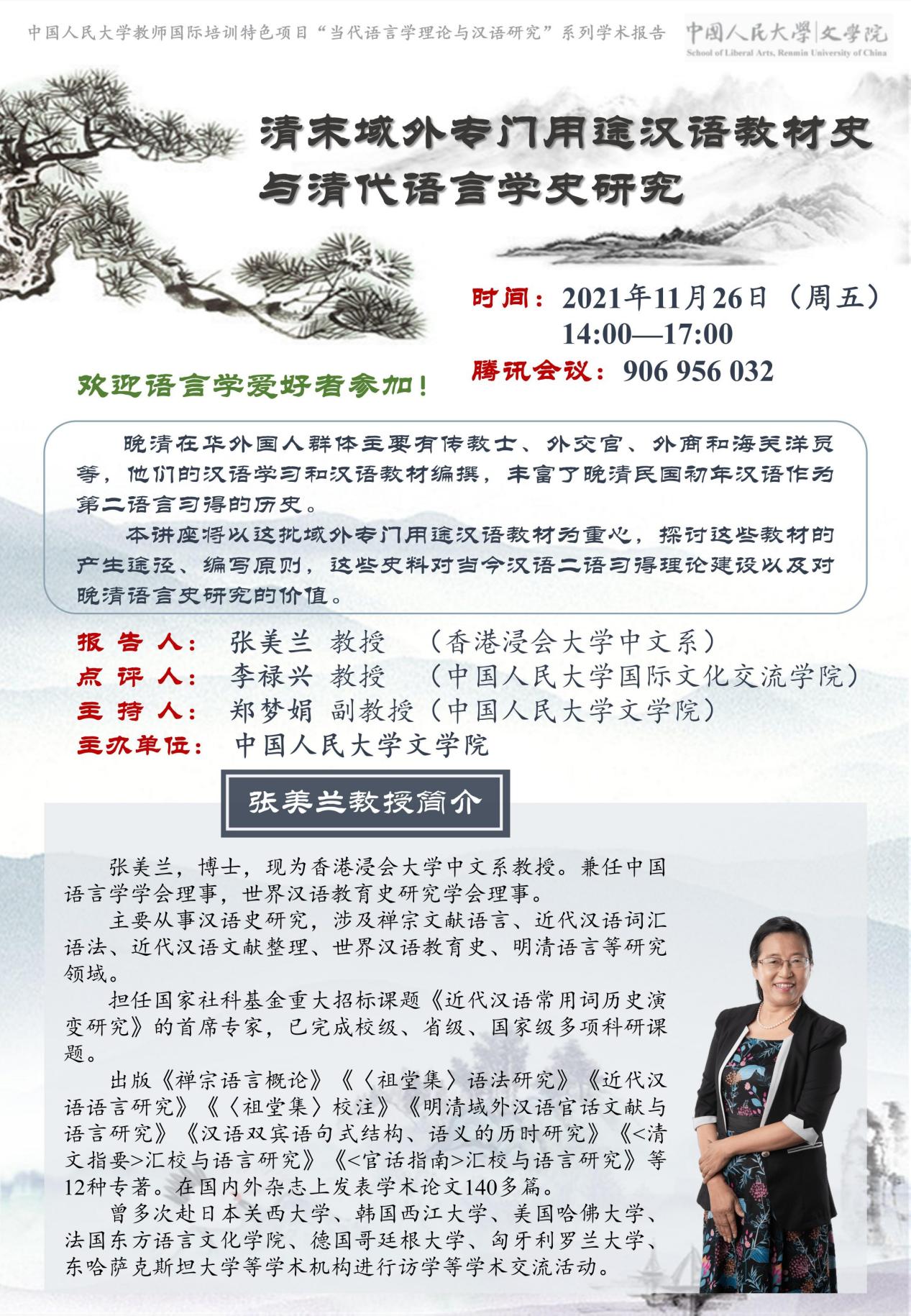 【讲座预告】张美兰教授:清末域外专门用途汉语教材史与清代语言学史研究