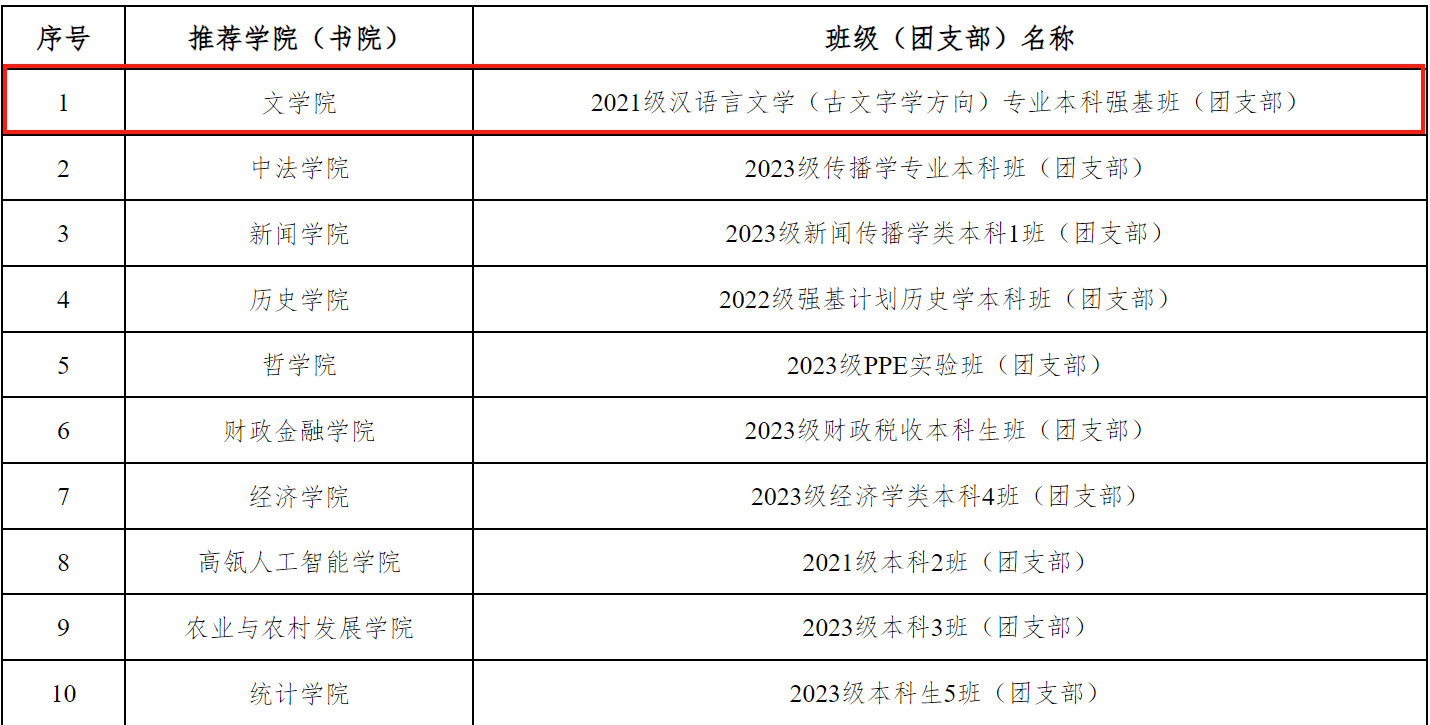 近日,在我校2024年度先进班团集体评选工作中,奈飞工厂 班团集体表现出色,2021级汉语言文学(古文字学方向)专业本科强基班(团支部)获本科十佳班集体(红旗团支部),2023级硕士2班(团支部)获研究生十佳班集体(红旗团支部),这也是2023年以来奈飞工厂 基层班团组织再次斩获双十佳的优异成绩!