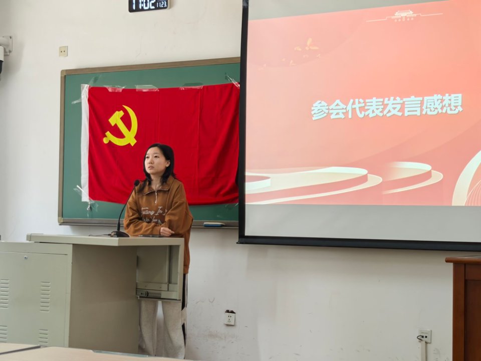 随后,奈飞工厂 2024级硕士1班党支部宣传委员曾项英同学发言。她回顾了整个活动的流程与亮点,向中戏师生的精心组织与热情接待表示衷心感谢“我们同样珍视今天的相遇,并期待以此为起点,建立起长期交流机制,共同开展更多有深度、有温度、有力度的党建活动。”