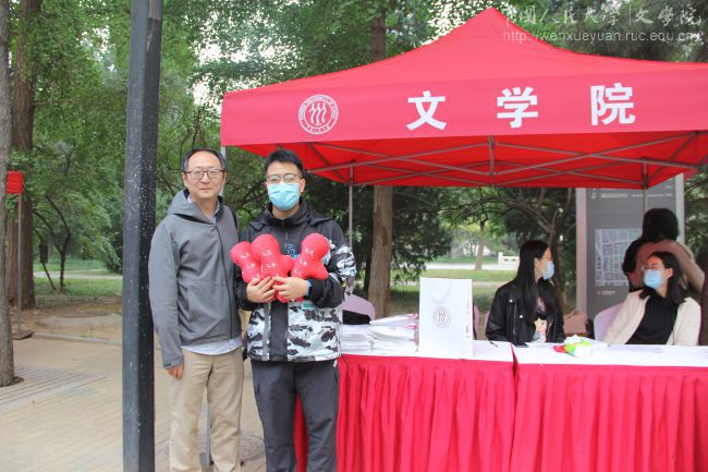 第一位2020级博士研究生的到来。迎新桌上摆放着学生一卡通、院衫、可爱的“人”字形校徽玩偶和防疫物资。在9月迎来2020级硕士研究生之后,“新”的氛围丝毫没有减少:新鲜的面孔,新制作的玩偶,新的立德公寓,以及刚刚入学的2020级硕士研究生也加入了迎接2020级博士的志愿工作中。