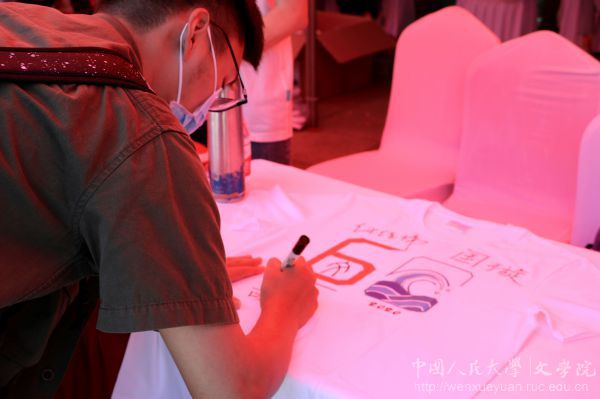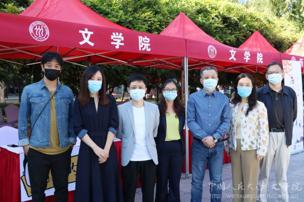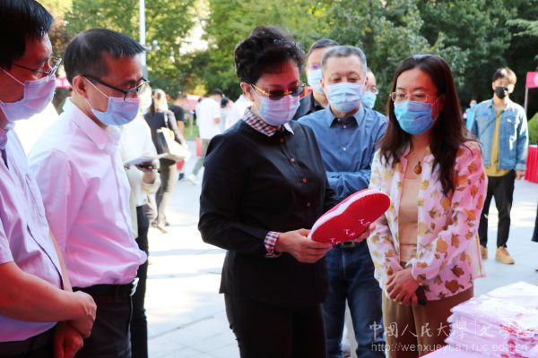 师生进行了交流。靳诺书记还特别称赞了学院为新生拍照准备的红色篆体“人”字形公仔,称“非常有人大特色”!