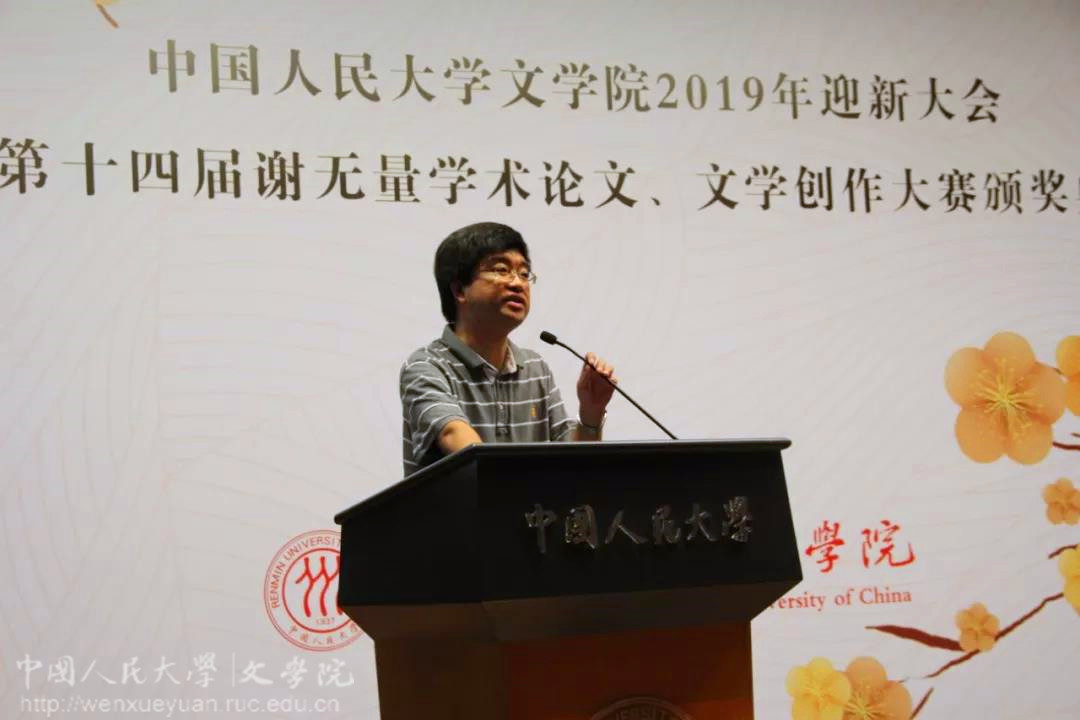 在庄严的国歌声中,迎新大会正式开始。奈飞工厂 院长陈剑澜教授首先代表学院对2019级新生表示了热烈祝贺与欢迎。他在致辞中谈及个人对文学教育的困惑:文学创作可以教、可以学吗?对此,他引用阎连科教授对今日文学困境的阐述——“从没像今天这样感到写作的无意义,今天的现实富得像一座矿,但文学却穷如鹅卵石”——来强调文学创作的教学重点是文学精神的培养,他认为好的作家应是为文学精神所困者。陈剑澜院长希望同学们在收获知识的同时,也能为当下的文学创作注入新鲜血液。