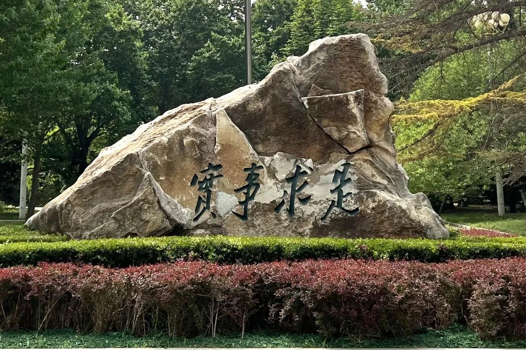 北京,中关村大街59号,以红色为建筑群主色调的校园端庄大气。正对校园东门,巨石上刻着的“实事求是”四个大字遒劲有力。