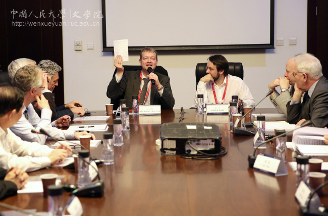 杨慧林教授主持。参加会议的理事会成员包括德国歌德学院(中国区)阿克曼教授、德国杜塞尔多夫海因里希·海涅大学培高德教授、英国牛津大学罗伯特·恰德教授、英国格拉斯哥大学贾思柏教授、美国普林斯顿大学柯马丁教授、美国耶鲁大学司马懿教授、澳大利亚格里菲斯大学马克林教授、土耳其安卡拉大学欧凯教授、奥地利维也纳大学李夏德教授、丹麦哥本哈根商学院曹伯义教授、瑞士巴塞尔大学韦宁教授、香港城市大学张隆溪教授、北京大学王博教授和孔子学院总部王甬博士。