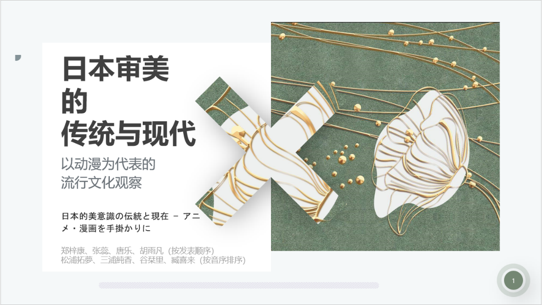 第三小组围绕“日本审美的传统与现代:以动漫为代表的流行文化观察”为主题进行展示。该组在系统揭示日本审美观念范畴及对审美观念进行现象学分析的基础上,从传统、传统与现代的衔接、现代三个视角,探讨日本三大核心审美观念的流变。以中日学生“路上观察”活动参观东京国立博物馆、东京增上寺、镰仓长谷寺、三鹰之森吉卜力美术馆等地为依托,小组成员不仅从细节方面关注了传统建筑及文物背后的审美观念,也探讨了吉卜力动画电影中的美学思想及日本动漫中的未来想象。