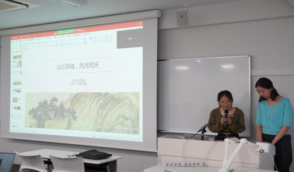 第一与第五调研小组首先进行联合汇报,报告主题为“山川异域,风月同天——中日文明互鉴”。调研内容主要以实地调研和学者对谈两部分展开。