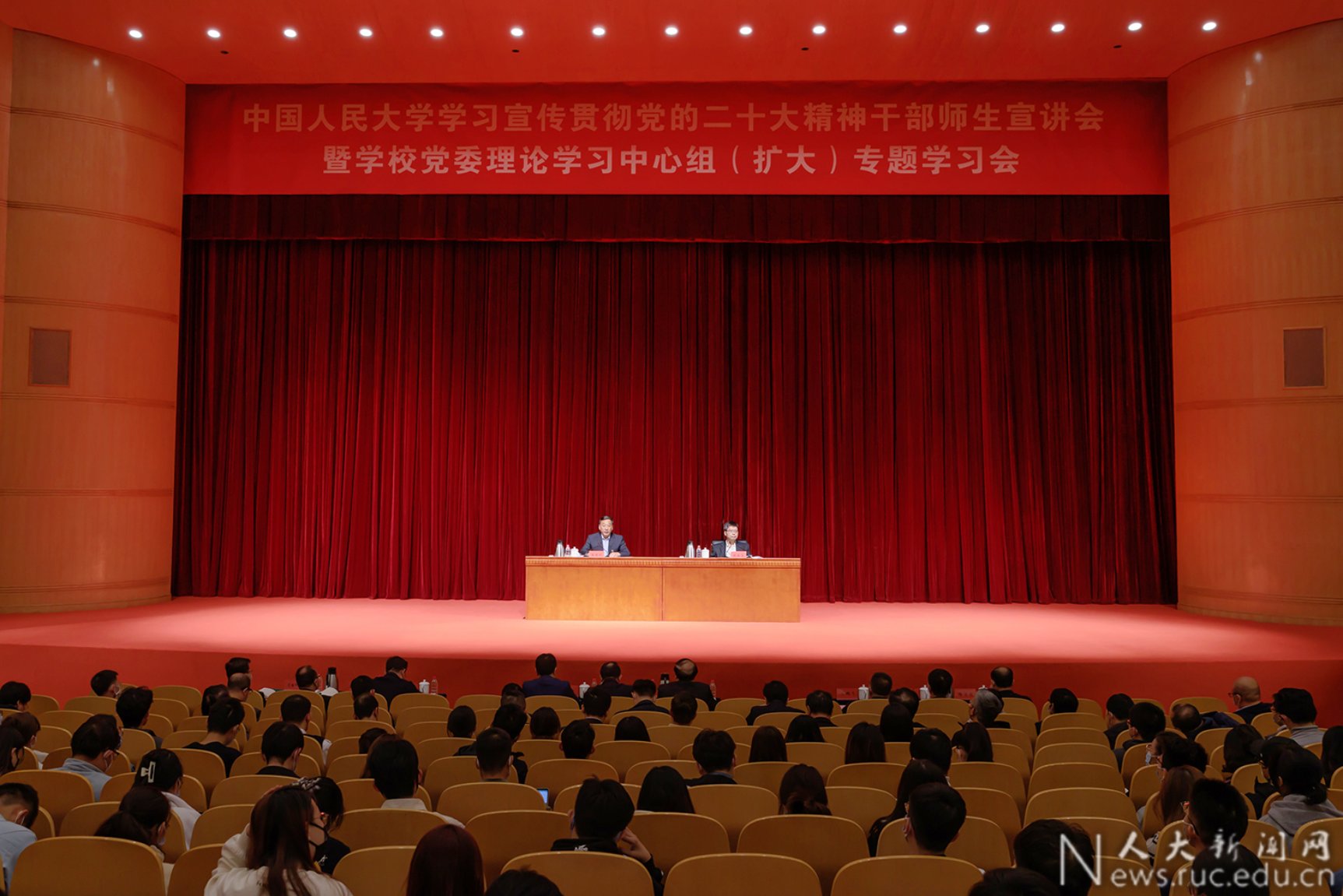 要真抓实干、敢于担当,用党的二十大精神推动工作。不折不扣落实好党中央的决策部署,进一步对标对表党的二十大确定的宏伟蓝图和目标任务,用学习成果指导学校改革发展实践,用实践收获检验学习成效。持之以恒推进全面从严治党,把学校建设成为党领导的坚强阵地,让听党话、跟党走的信念成为人大师生的自觉政治追求。
