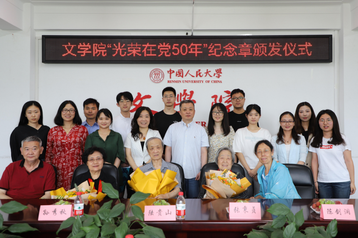 最后,与会人员和荣获“光荣在党50年”纪念章的老党员教师合影留念,颁发仪式圆满结束。学院党委安排班子代表和离退休支部书记于6月24日逐一走访看望未能到场参加仪式的老党员,亲手将纪念章颁发至每一位老党员手中,深入了解老党员的需求,用心、用情把党组织的关心关爱传递给老党员。