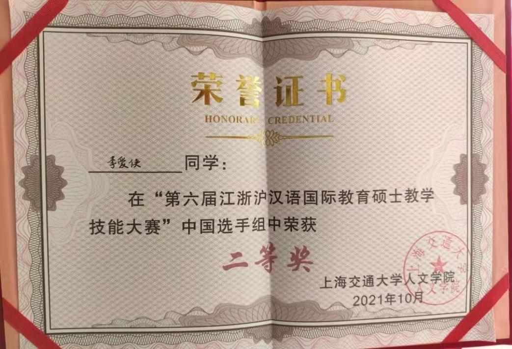 20级汉语国际教育专业研究生李爱侠、汪雅文同学参加了此次比赛,表现优异,分别获得了汉语教学技能大赛中国学生组二等奖。这是自2015年以来历届参赛的最好成绩。