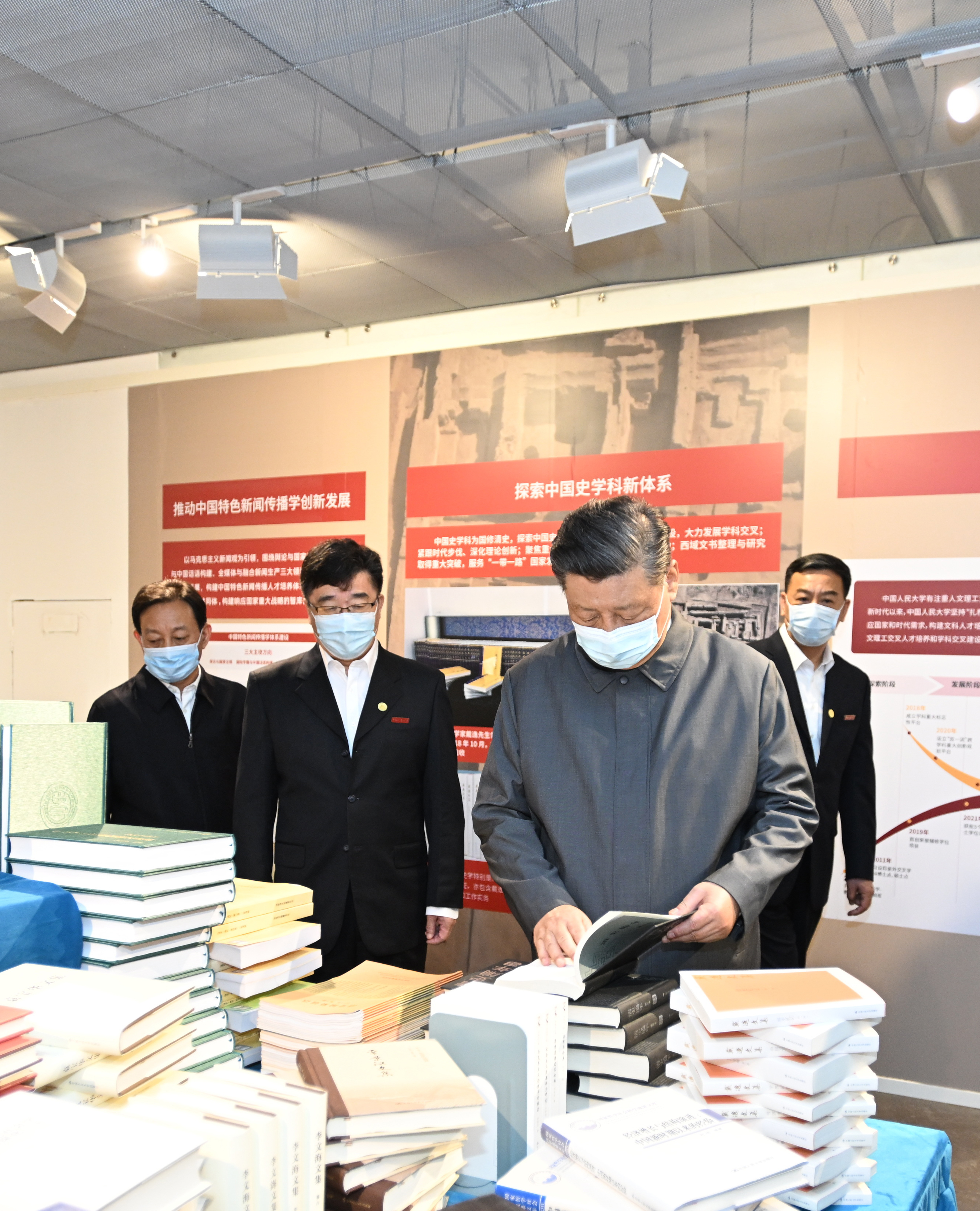 ↑这是习近平在博物馆了解学校近年来教学科研成果等情况。