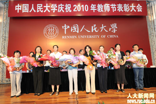 “教学优秀奖”; 刘秀岩 王仙亮 杨慧林 方兢 冷成金 许路 徐桂梅 金元浦 张庆旭 卢铁澎 李炳海老师受到2010年从事教育工作满30年教职工表彰。程光炜教授代表获奖教师发言时表示,将不负荣誉,继续努力奋斗在教学一线,培养出更多优秀人才。