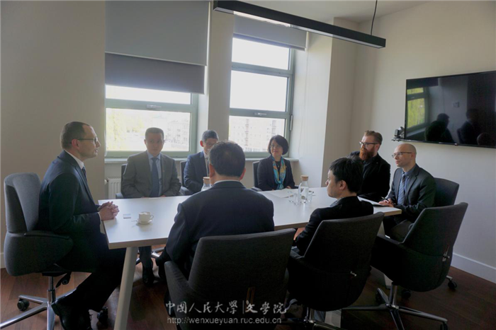 访问期间,陈剑澜一行还与波兰的部分汉学家和翻译家进行座谈。华沙大学李周(Malgorzata Religa)、克拉科夫雅盖隆大学卡塔知娜·邵赖克(Katarzyna Sarek)、社会科学与人文大学玛塔(Marta Tomczak)、职业文学翻译家奥金(Agnieszka Walulik)等参加座谈。与会学者主要围绕中国当代文学作品翻译、中国古代学术经典研究等主题展开深入交流。杨庆祥副院长在座谈中提议,计划明年四月在北京举办“中国当代文学与学术翻译国际工作坊”,邀请中国当代作家、波兰翻译家、两国相关领域学者以及出版商共同参加会议,讨论中国当代文学作品研究和翻译出版等问题。该提议获得与会学者一致赞同。
