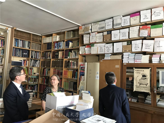 会谈结束后,陈剑澜一行在罗然教授陪同下参观了东亚系图书馆。
