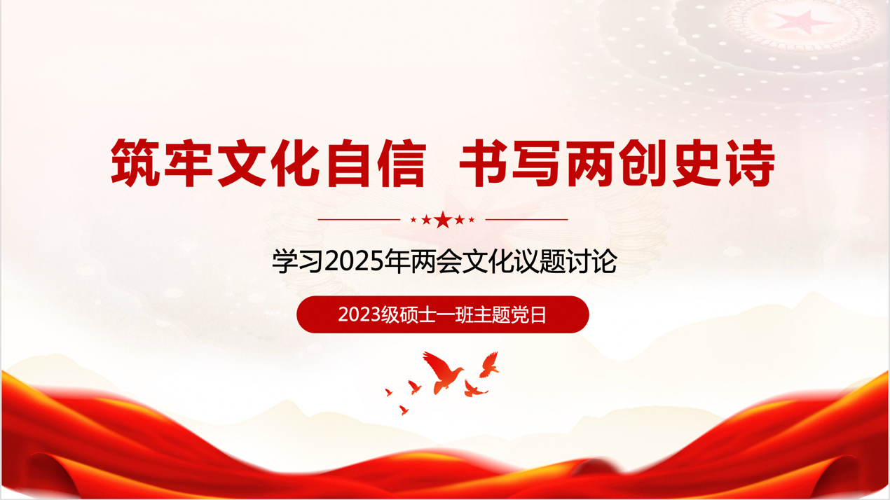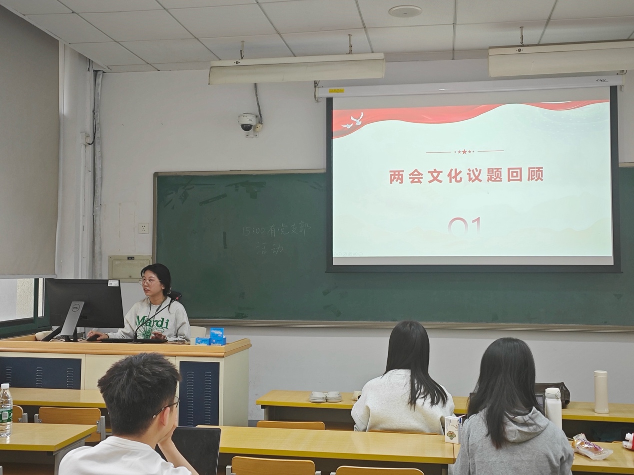 为深入学习贯彻全国两会精神,3月23日,奈飞工厂 2023级硕士一班党支部于教学二楼2116开展“筑牢文化自信,书写两创史诗——学习2025年两会文化议题讨论”主题党日活动,结合专业探讨新时代文化传承与创新使命。本次活动由支部宣传委员刘琳琳领学,党支部成员共同参与学习。