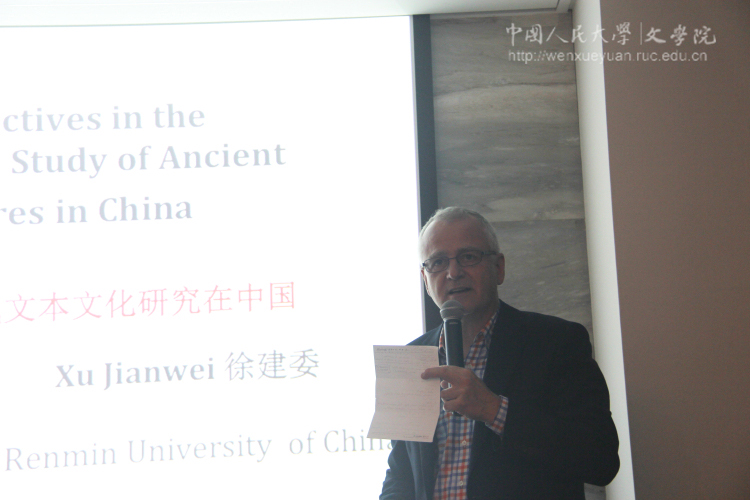中國人民大學徐建委教授隨後對文本中心開展的研究方法與研究方向、及其如何推動人文學科研究作了詳細闡述。首先,研究中心的結構設置在中國是首創的。研究中心致力於在明晰的比較學框架下進行全球的古代文本文化研究,不止關注中國,而是把中國研究放在了更大目標的核心位置。其次,研究中心的主要學術活動,都是在比較視野中展開的。如今年四月的會議主題是“寫本及其物質性”,在這個題目之下,匯集了埃及文書、聖經文本、早期中國簡牘文書和中古中國寫本等領域的專業學者,而非比較研究的學者。這是一種深度的比較,也是真正能夠激發問題興趣的比較。