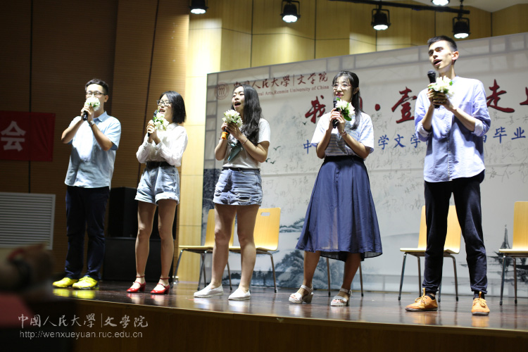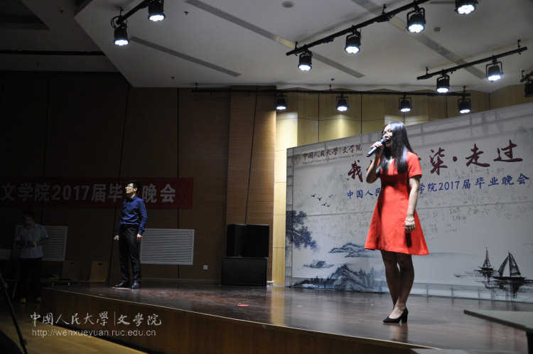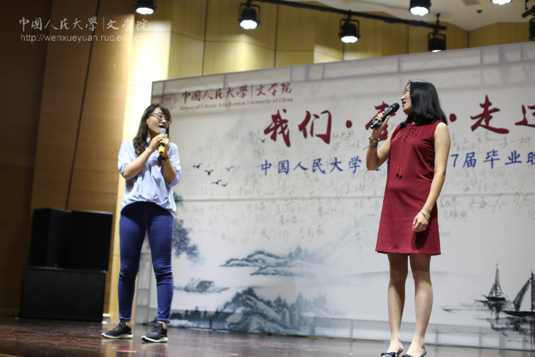 陈圆和杨笛带来歌曲《我要你》,悠扬的旋律、动人的歌词让师生们忆起人大校园里的一草一木和如水月色,端着离别的这碗酒,我只愿再和你看一次校园月色,或是一勺池月影荡漾,或是明法台阶前银盘高悬。