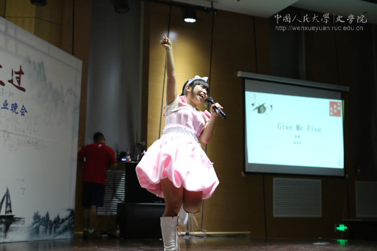 可爱的粉红短裙和舞蹈,活力四射的日漫歌曲旋律,郭澄澄的歌舞表演《Give me five》则将全场气氛引向高潮。当她唱出“say no”时,场下观众齐声喊“give me five”,整个音乐厅热情洋溢。