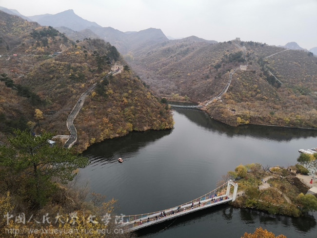 秋高气爽,枫叶红遍,层林尽染。学生们爬着参差不齐的台阶,走在巨龙的背上,从砖垛之间望去,看见了绿粼粼的湖水:一半蜿蜒盘旋在山脊,一半沉没于水底,亲身体味了“青山碧水京城绕,早有卧龙湖上吟”的风韵。