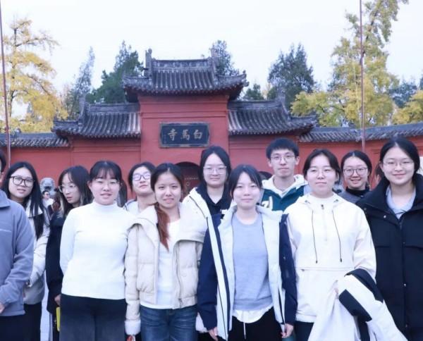 实践团还走进有“中华第一古刹”之誉的白马寺,感悟中华文明兼容并蓄的宽广气象。白马寺始建于东汉永平年间,是佛教传入中国后由官方兴建的首座寺院。习近平总书记指出,白马寺见证了佛教传入、发展并不断中国化的进程。历史证明,坚持我国宗教中国化方向是完全正确的,要积极引导宗教同中华优秀传统文化相融合、与社会主义社会相适应。寺内,中国传统殿宇与泰国、缅甸等国际佛殿苑交相辉映。师生驻足殿前,在悠远的钟声中聆听历史,感悟文明交融的脉络。历经岁月洗礼的白马寺,始终与社会发展同步、与时代进步同频。从丝路驼铃到当代对话,白马寺始终以开放之姿承载多元文化,续写着“各美其美,美美与共”的时代篇章。