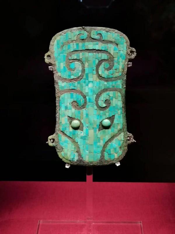 步入“第一王朝”展厅,师生重温了大禹定九州的宏伟功业。九州即禹迹,禹迹即天下,天下即中国,华夏国家的雏形由此萌发。这片有夏之居、邦国林立的中原沃土,历经漫长的发展和交融,终于在河洛之间孕育出王朝文明的曙光。在“赫赫夏都”展厅,实践团师生近距离观摩了镶嵌绿松石兽面纹牌饰、七孔玉刀、“骨猴”、陶堆塑龙纹透底器等夏代的珍贵文物。精巧的工艺与深邃的审美折射出早期中国的工匠精神与社会风貌,为研究当时的社会习俗、宗教信仰与艺术风格提供了鲜活的实证资料。