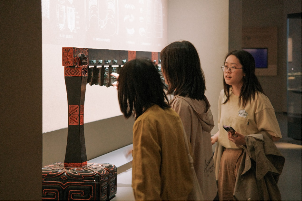 山西地处华夏文明的核心区域,山西青铜器体现了商周王朝的文化脉络,反映了中国礼乐文明发展演变的进程,形成独具特色的文化面貌。小组成员们此行重点调研的山西青铜博物馆展示面积达1.1万平方米,服务体系包括基本陈列、教育互动、数字青铜、文创空间等。博物馆的“吉金光华”展区展出文物,上起陶寺,下至秦汉,跨越整个青铜时代,演绎了中国青铜文明的辉煌乐章。2200 余件青铜重器让我们赞叹不已,原先只在课堂之上学习了解过的青铜器出现在眼前。成员们围在器物周边,指认那些熟悉的铭文,“专业对口”的感觉让每个人都兴致高昂,对过去学习到的知识也有了更深入的感悟,与千年前的古人跨越时空对话。