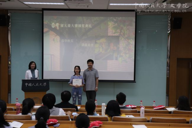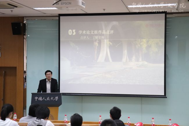 学术论文组评审丁健老师介绍了学术论文选题的三个标准:题目小而明确,材料新且见解新,内容具有应用价值,并例举本届大会中的获奖作品来具体说明。同时,丁健老师指出,广泛的文献和个人的学习生活经验都可以作为选题的来源。点评环节结束后,到会老师们为获奖同学代表颁发获奖证书。