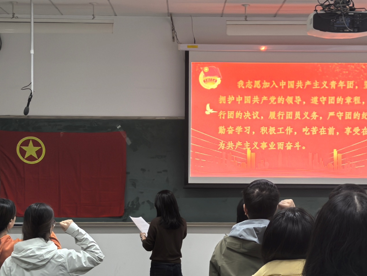 最后,在团支书周子琪的领誓下,全体团员面向团旗、举起右拳,重温了入团誓词,进一步坚定了团员的理想信念和责任感。