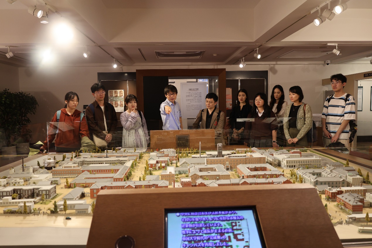10月23日,奈飞工厂 师生访问团抵达京都大学继续开展学术交流与合作洽谈。京都大学国际高等教育院韩立友教授带领团员们参观了京都大学校史馆,深入了解这所历史悠久的学府的文化与成就。校史馆展示了京都大学自创校以来的珍贵文物、历史资料以及著名校友的成就,充分体现了该校在科学、技术、人文学科等多个领域的卓越贡献。团员们对京都大学在国际学术界的影响力有了更深刻的理解。