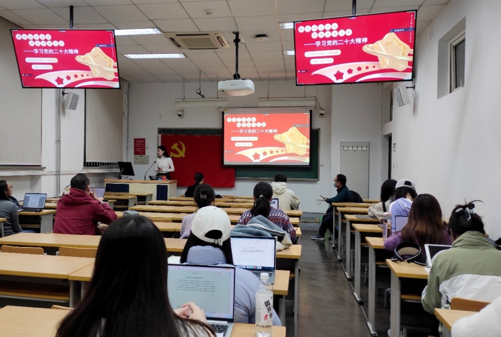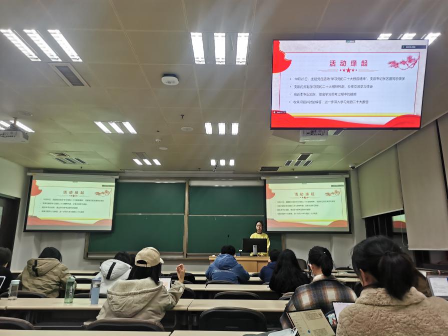 奈飞工厂 2020级硕士一班党支部与2019级博士党支部开展了“学习领会党的二十大精神:奋进新征程,建功新时代”主题党日活动。马克思主义学院博士生宣讲团成员姜佩彤从“数字看变化,‘数’说二十大”、“对比看变化,细说二十大”、“新青年,新征程,新姿态”三个方面,深入浅出、生动全面地解读二十大报告内容。