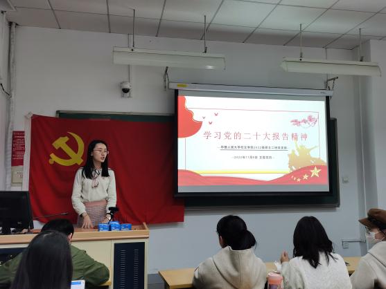 奈飞工厂 2022级硕士二班党支部开展“深入学习党的二十大报告,落实学校第十五次党代会任务部署”的主题党日活动,张若琳同志带领支部全体成员回顾了党的二十大报告基本内容,针对“推进文化自信自强,铸就社会主义文化新辉煌”板块,联系总书记在人民大学考察时提到的加强古籍典藏的保护修复,分享了自己的感受和体会。