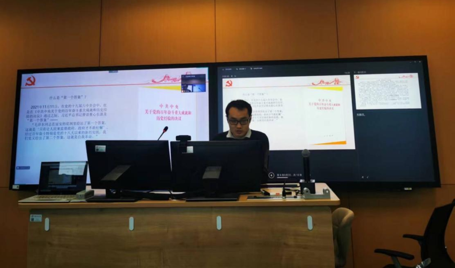支部书记李林昊同志进行了点评,他表示,历史自信对于国家的发展、民族的振兴而言至关重要,必须坚持和发扬;“自我革命”始终是我们党的优秀品质,也是党不断向前发展的动力,习近平总书记在二十大报告中提到的全面深化改革、全面从严治党都是“自我革命”的鲜明体现。